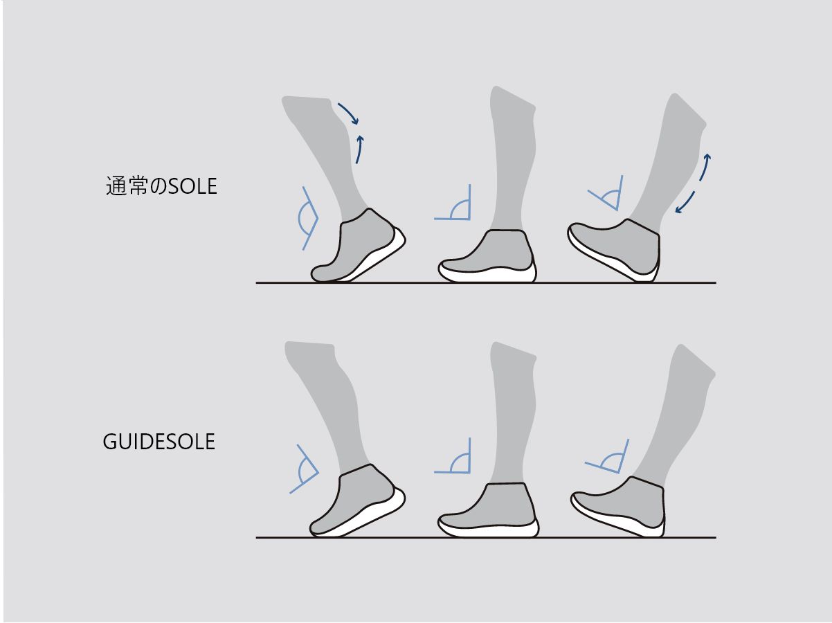 転がるようなライド感で足にかかる負担を軽減する「GUIDESOLE」に、