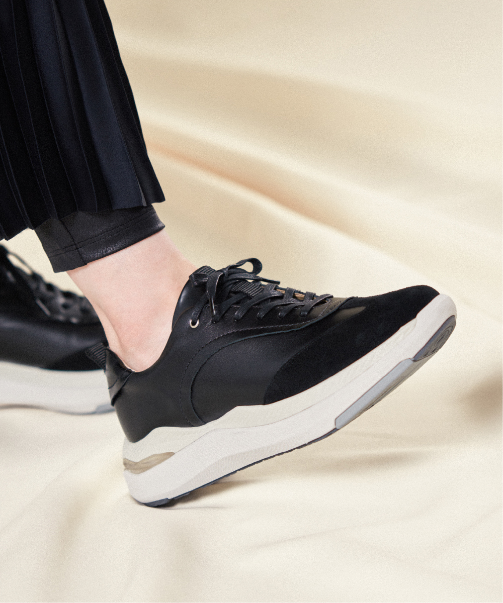 履いてみてまず感じたのがフィッティングの良さ。足全体はもちろん、特にかかとがしっかりホールドされている感覚がありました。また、前に歩くときにコロンと転がるような感覚があって、これなら長距離も足への負担が少なく歩けそうだなと感じました。あとはデザインもすごく好みです。洋服が好きで普段からスポーティーなパンツスタイルやキレイめなワンピースなどいろいろなタイプの服を着ることが多いのですが、カラーリングがシックなのでいろんな服装に合わせやすそうですよね。