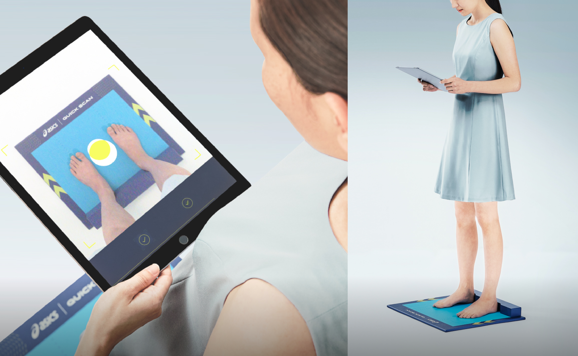 手軽に足形を計測できるデジタルツール「ASICS QUICK SCAN」を